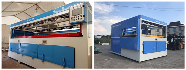 2.    ACF系列大高速吸塑機(jī)。是市場(chǎng)上使用吸塑機(jī)型號(hào),在自動(dòng)化程度、產(chǎn)量、人工使用量、機(jī)器價(jià)格親民,較為容易接受的吸塑機(jī)設(shè)備。工藝步驟:卷材自動(dòng)拉料、加熱、真空吸塑、整版裁切、裁斷機(jī)分切