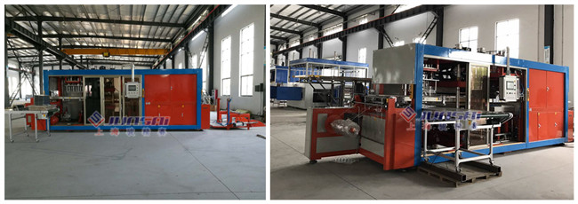 5.    自動(dòng)厚板吸塑機(jī)。工藝步驟:吸盤上料、加熱、真空吸塑成型、自動(dòng)取料、雕刻機(jī)分切。