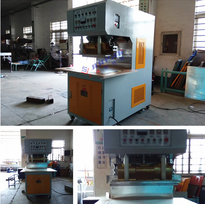 由圖片可看出操作平臺此同其設(shè)備視覺效果好,調(diào)節(jié)模具更方便,增加了U型槽的寬度及深度,并在U型槽兩側(cè)加裝了滾輪,對鎖模壓板的瘦身擴大焊接部分的操作空間,感應(yīng)板的設(shè)計可方便地幫助用戶將膜材定位,高頻輸出銅片通過鋁板固定使其始終保持在高位,避免操作中較多材料被銅片劃傷現(xiàn)象,在控制部分加裝專用試模按鈕幫助操作員非常方便地對位,壓料及調(diào)試時的二次焊接,客戶通過與同其設(shè)備比較后反饋,這款設(shè)備操作更靈活了,對位方便了,拉大面積材料省力了,員工不會燙到手了,效率提高了。