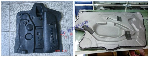 EVA汽車防水膜吸塑機(jī)加工后的防水膜具有特定形狀,輪廓清晰分明使車門內(nèi)部更加整潔有序;與模壓成型工藝相比,吸塑成型機(jī)生產(chǎn)速度快,節(jié)拍緊湊,能耗更低,換模成本和效率提高了很大一個(gè)層次。